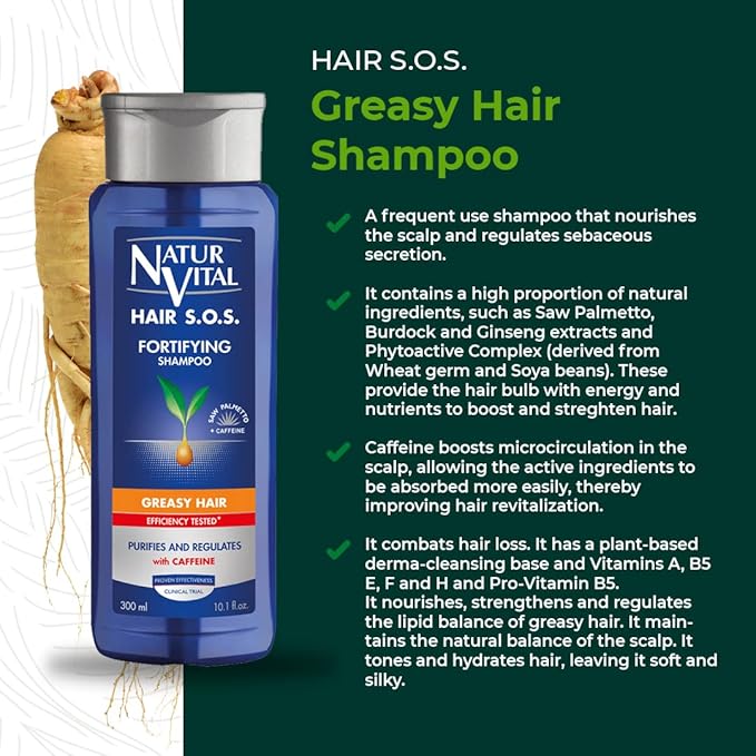 Natur Vital Unisex Natural, Plant-based Hair SOS Revitalizing Shampoo for Greasy Hair Cruelty-Free & Paraben-Free 300ml.